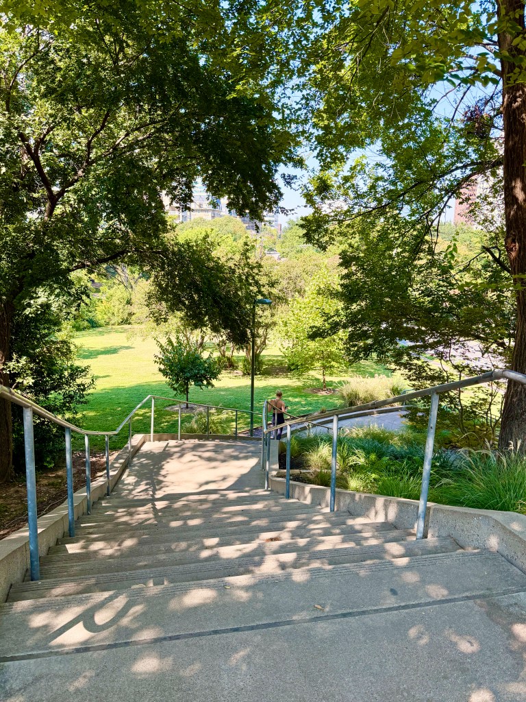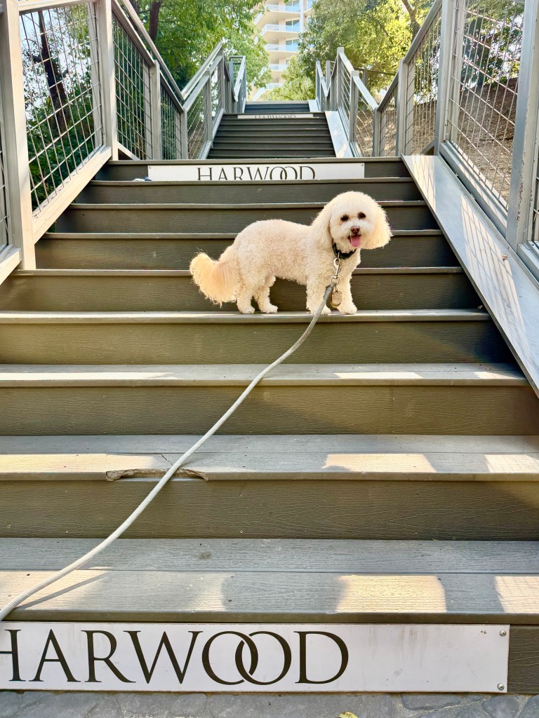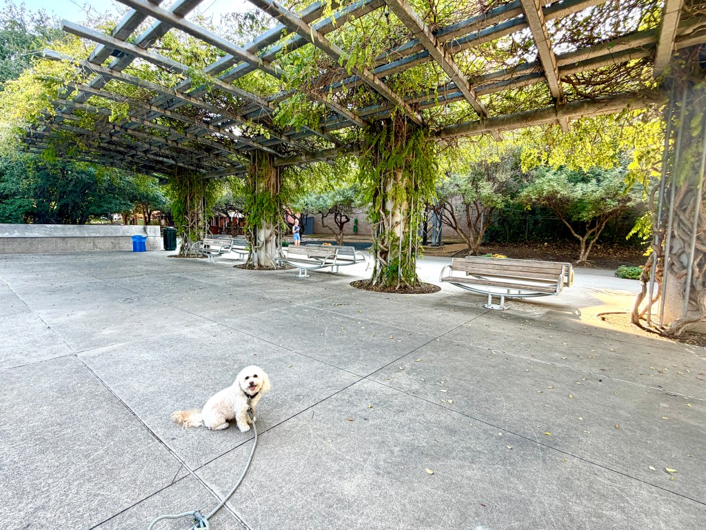 One of our favorite places to spend time (and get exercise!) is on the Katy Trail. Mature trees make this 3.5-mile corridor an escape from the surrounding city. The current of joggers, bikers, and walkers carries visitors along in its infectious, communal energy. Pet waste bags are situated along the trail, as are drinking fountains with dog bowls.